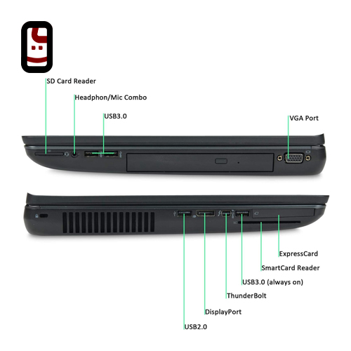 🔌 اتصالات و پورتهای لپ تاپ استوک اچ پی HP ZBook 17 G3 i7-6 16Gb 512GB 4GB W6150M