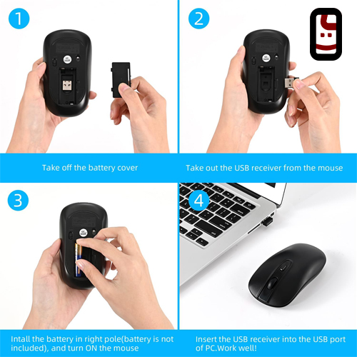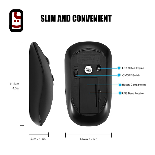 نکته مهم: دانگل USB این ماوس در داخل محفظه باتری (زیر درب ماوس) قرار گرفته است تا از گم شدن آن جلوگیری شود.
